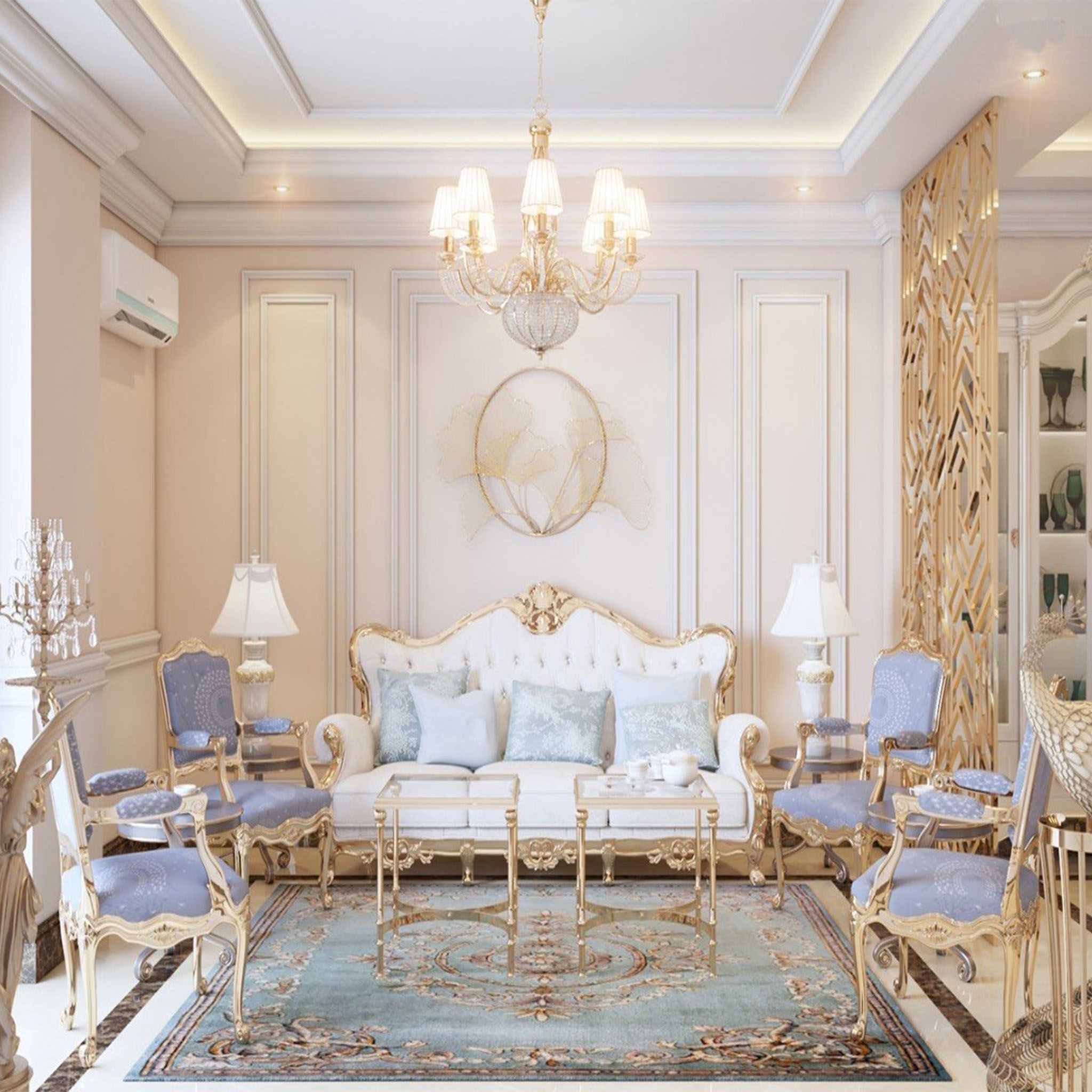 Thiết kế phòng khách chung cư phong cách Tân Cổ Điển