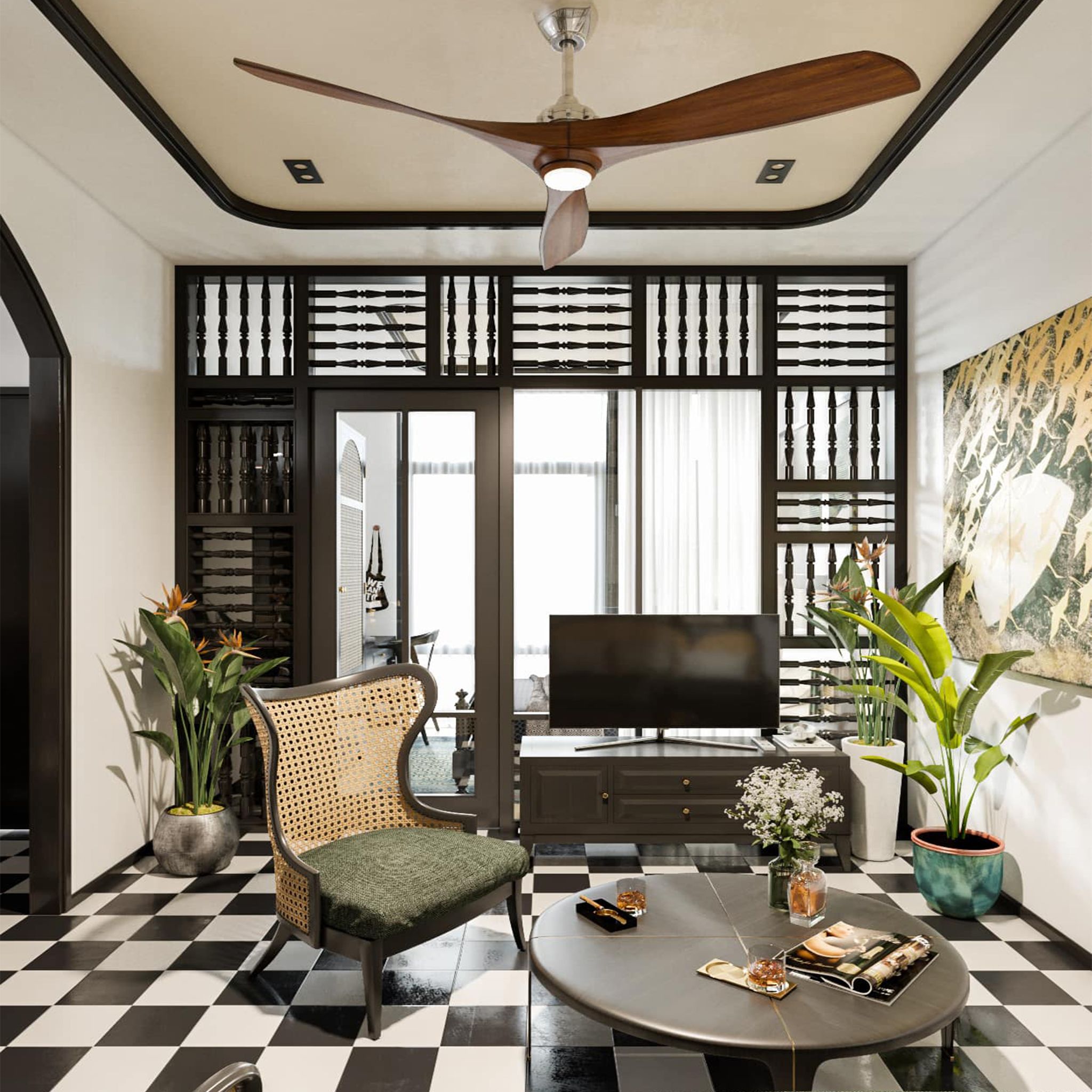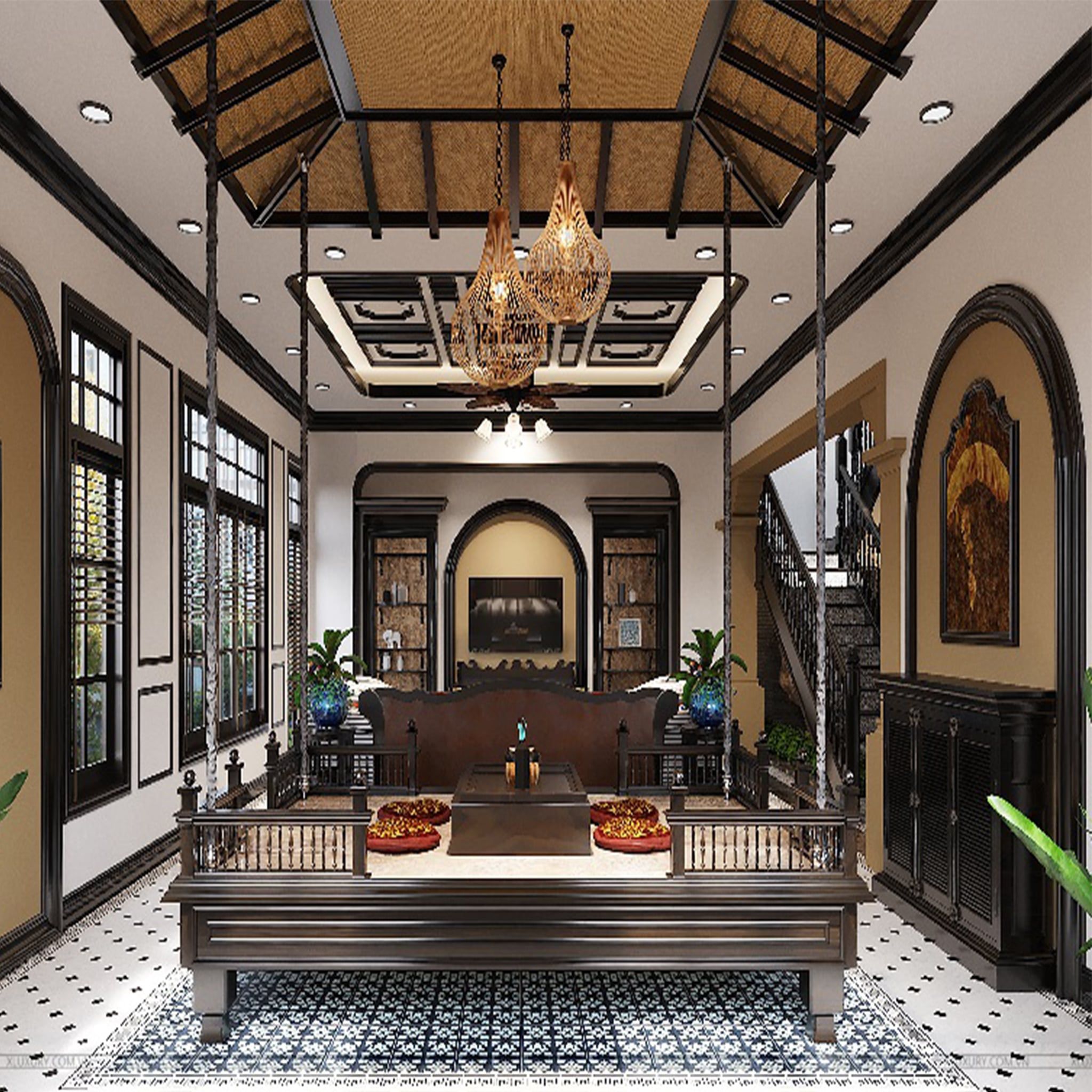 Thiết kế phòng khách chung cư phong cách Indochine